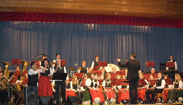 Mit großer Spielfreude knüpfte die Kapelle einen musikalischen Bogen vom Einzug zum Opernball in Wien über eine rasante Raftingfahrt durch Stromschnellen in Amerika, zu einem Wiederhören von Rondo Veneziano und einem Ausflug nach Spanien und Italien bis zur Rückkehr in die Heimat.