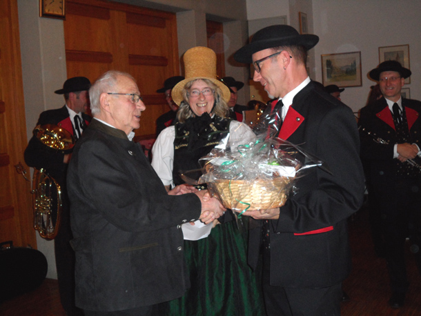 Für die Musikerinnen und Musiker unter der Leitung von Vizedirigent Gerhard Hock war es eine Selbstverständlichkeit, dem ehemaligen Musikkameraden zu diesem seltenen Jubiläum mit Musik zu gratulieren.
