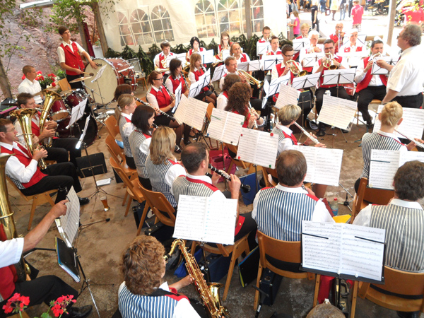 Gott sei dank schwenkte die Witterung rechtzeitig um, die Sonne kam hervor und blieb den Musikern den ganzen Tag über treu; mit sommerlichen Temperaturen und einem vollbesetzten Festplatz war der Tag gerettet.