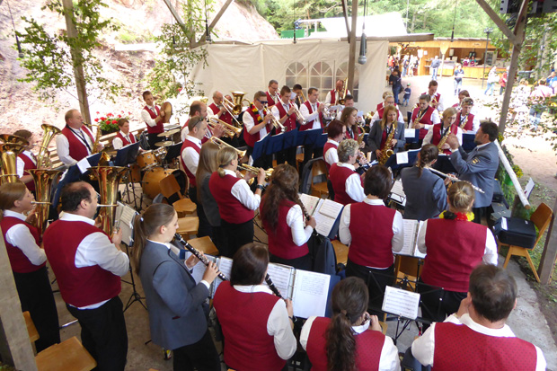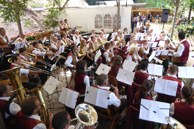 verstand, die Gäste auf dem inzwischen vollbesetzten Festplatz über zwei Stunden mit Super Blasmusik bestens zu unterhalten.
