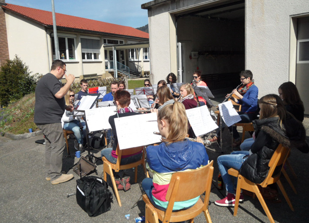 Die Holzbläser nutzten das schöne Wetter und verlegten die Probe kurzerhand ins Freie.