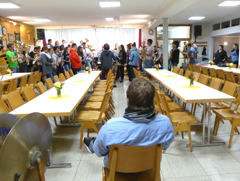 Alle Musikerinnen und Musiker trafen sich bereits eine halbe Stunde vor dem sonstigen Probebeginn und bauten sich in dem geschmückten Probelokal auf. Die Vizedirigenten suchten sich einige der Lieblingsstücke von Thomas heraus um ihn bei seinem Eintreffen mit einem ausgedehnten musikalischen Geburtstagsständchen zu überraschen.