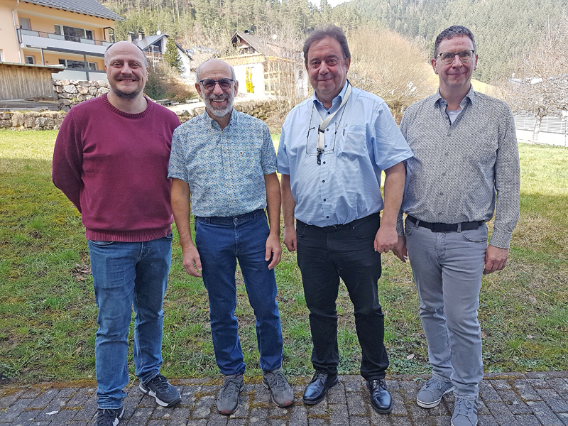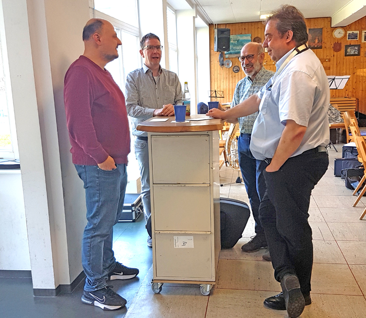 Unser Dirigent Wolfgang Borho (rechts) holte zur Unterstützung die Dirigenten Michael Blum (von links), Hermann Bilharz und Ralf Vosseler um mit den einzelnen Registern die nicht einfachen Konzertstücke intensiv zu bearbeiten.