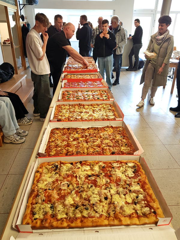 Zum Essen gab es verschiedene Pizzen, die allen ausgezeichnet mundeten. Der strahlende Sonnenschein trug zur Entspannung bei.