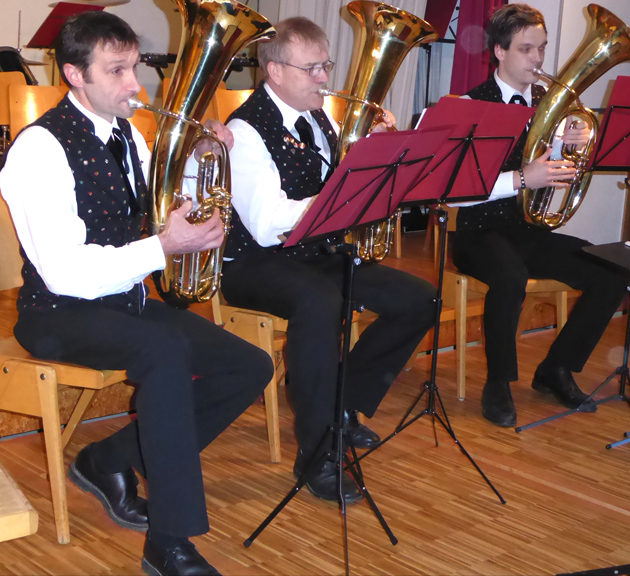 Die Trompeten hatten sich für ihren Vortrag das Spiritual GO DOWN, MOSES und PIRATES OF THE CARIBBEAN ausgesucht, während Tenorhörner und Bariton mit österreichischen Melodien glänzten.