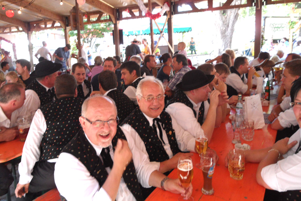 Endlich....Nach fast zweistündigem Konzert in brütender Hitze waren alle froh, endlich im Schatten ein kühles Bier oder sonstiges Getränk genießen zu dürfen. Der Aufbruch zur pünktlichen Heimfahrt erfolgte nach einer Rast im Pavillon der Musikkapelle Kollnau; alle sehnten sich nur nach einem: nach einer kalten Dusche.