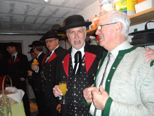 Nach mehreren Polkas und Märschen lud der Geburtstagsjubilar seine Musiker zu einem kleinen Umtrunk in die Garage ein, wo trotz der Enge bald eine lustige Stimmung herrschte.