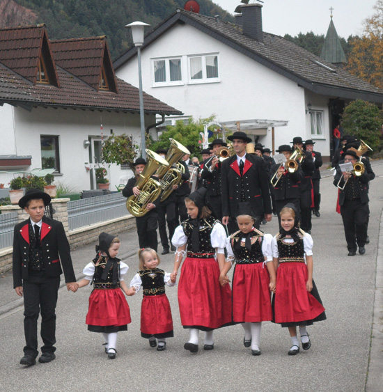 Die Trachtenkapelle zog mit Marschmusik zum Wohnhaus der Jubilare am Eichbühl. Die Musikerinnen und Musiker wurden zu einem Umtrunk eingeladen, für den wir uns herzlich bedanken.