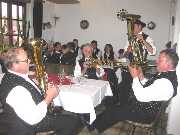 Die Musikerinnen und Musiker der Trachtenkapelle ließen es sich in der Weinkelterei Vierthaler bei einem ausgezeichneten Mittagessen gut gehen.