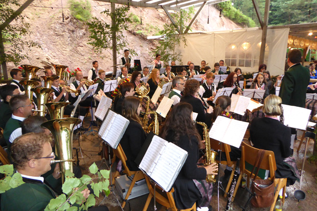 verstand, die Gäste auf dem inzwischen vollbesetzten Festplatz über zwei Stunden mit Super Blasmusik bestens zu unterhalten.
