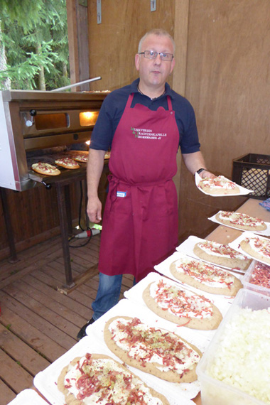 Neu im Angebot waren die von Stefan excellent und frisch zubereitete Datschkuchen, die bei den hungrigen Gästen sehr gut ankamen.