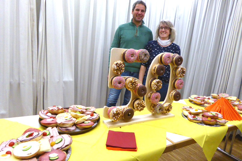 Aus diesem Grunde fiel die Musikprobe an diesem Donnerstag etwas kürzer aus. Die beiden Geburtstagskinder luden die Musikerinnen und Musiker im Anschluss an die Probe zu einem Imbiss ein. Die Trachtenkapelle spielte für die beiden dem Anlass entsprechend die passende Polka mit dem Titel "Ein halbes Jahrhundert".
