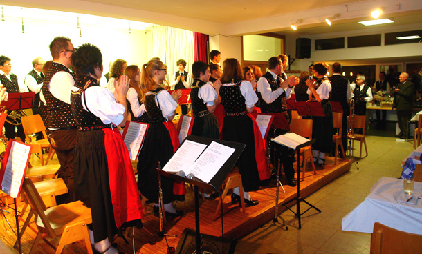 Den etwas wehmütigen Teil des Abends bildete die Verabschiedung von Dirigent und zwei bisher aktiven Musikern. –siehe gesonderter Bericht-