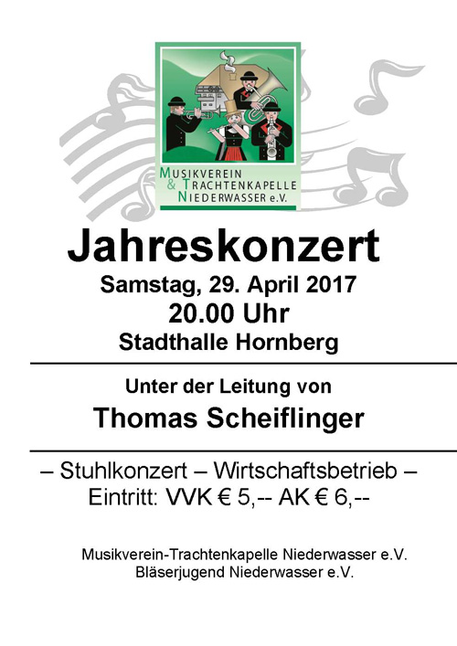 Die Trachtenkapelle präsentiert am 29.4.2017 in der Stadthalle mit einem völlig neueinstudiertem Progamm sein Jahreskonzert.