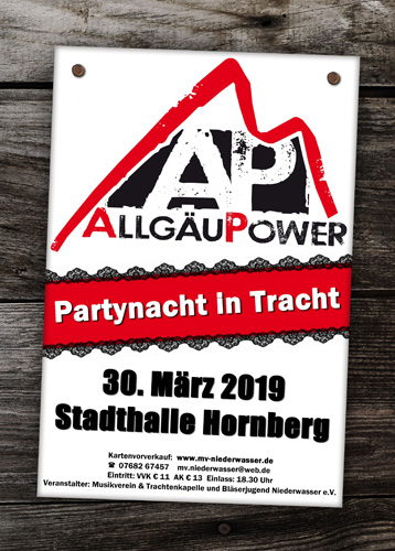 Die allseits beliebte und weithin bekannte Partynacht in Tracht mit ALLGÄUPOWER findet am Samstag, 30.März 2019 in der Stadthalle Hornberg statt.